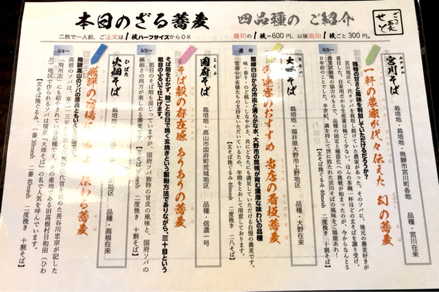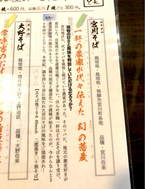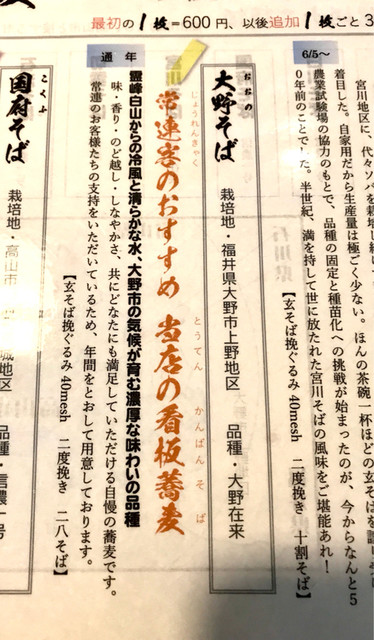 福井県大野市の品種。常連客に人気で、このお店の看板蕎麦。