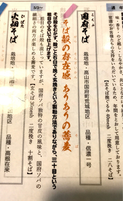 国府そばは、殻が入っているためか、他より硬く、なんか香ばしいです。