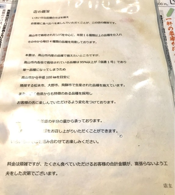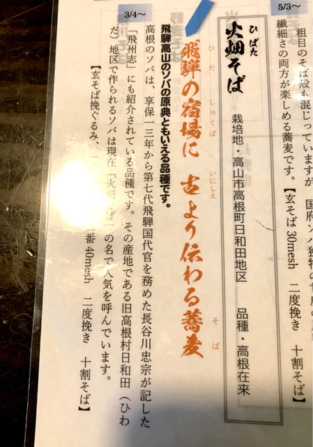古くより伝承されている高山の蕎麦です。