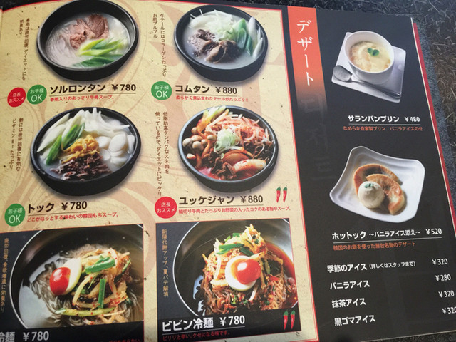 メイン料理は、チャプチェとスンドゥブチゲにしました。