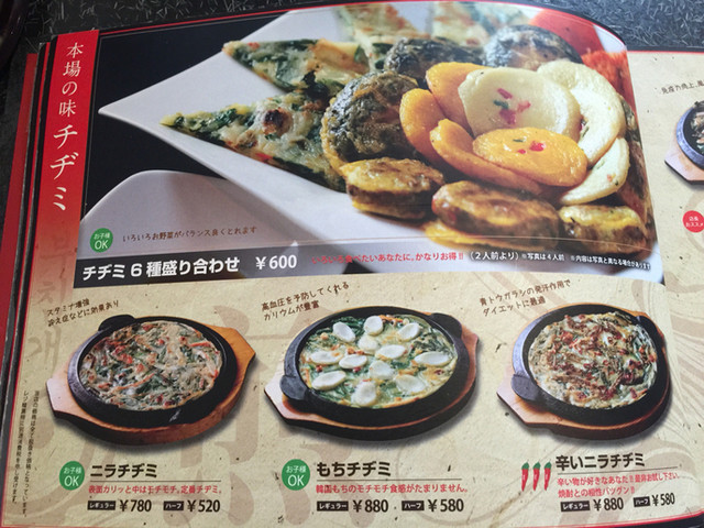 チヂミは、ニラチヂミとキムチチヂミが交互に提供されました。