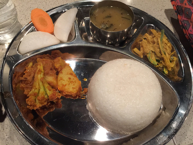 二日目はベジタブル定食にしました。ダルバート定食Aにチキンカレーが付いていないものです。