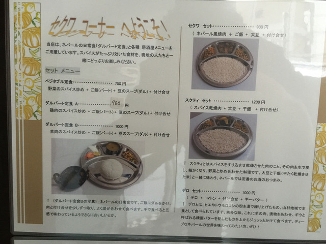 メニューに書いてある説明によると、ダルバートと言うのは、ネパールの日常食だそうです。