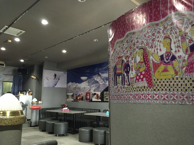店内は、壁面に、ネパールの風景や人々の写真、曼荼羅画?をプリントしたポスターが貼られました。