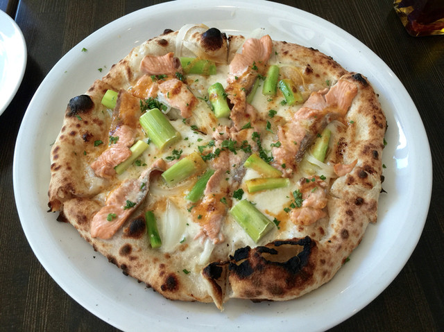 以前に食べた、鮭とアスパラのピザも、素材の味重視だったなと、思い出しました。