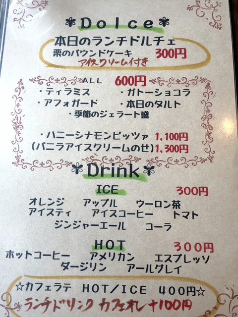 ランチセットのドリンクと プラス税別300円のドルチェ