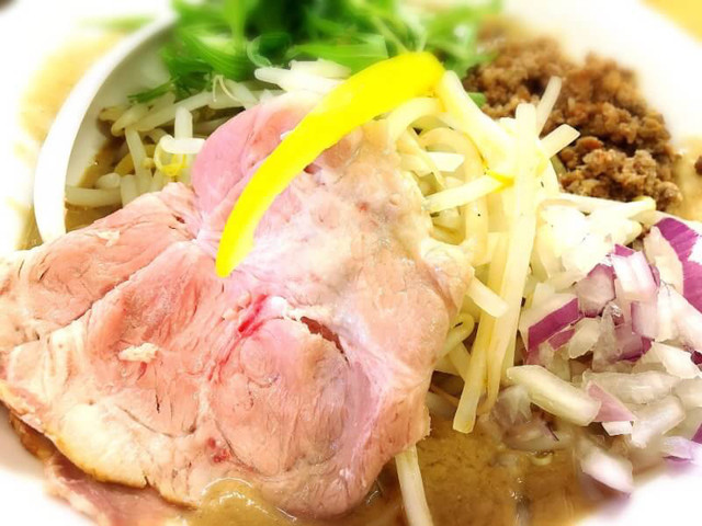 味噌 安定の美味しさ。味が濃いわけではないのにドロドロしたスープ、太麺によく絡みます。濃いとんこつスープとは違い、ザラザラした後味も無し。トッピングのタマネギや水菜、柔らかチャーシューとの相性も良いです。
