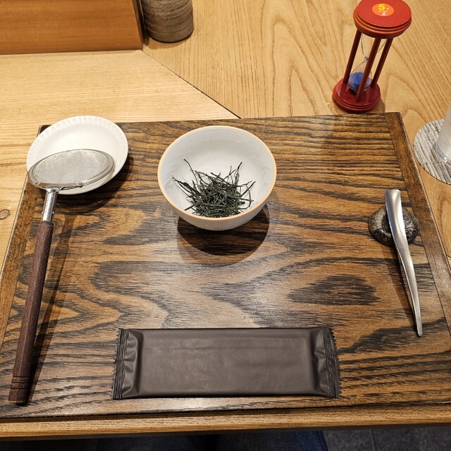 飲み物は茶名人の煎茶、焙じ茶や栗が原料の純米酒、