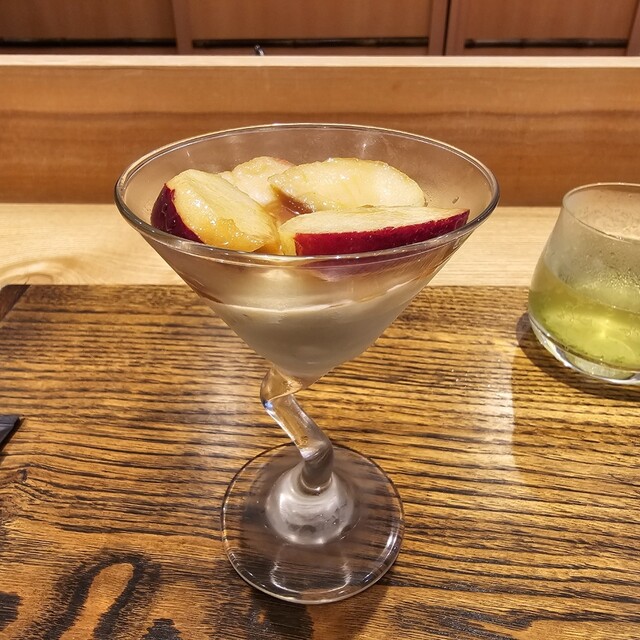 林檎は自家製の栗蜜などを使い、その場でソテー。