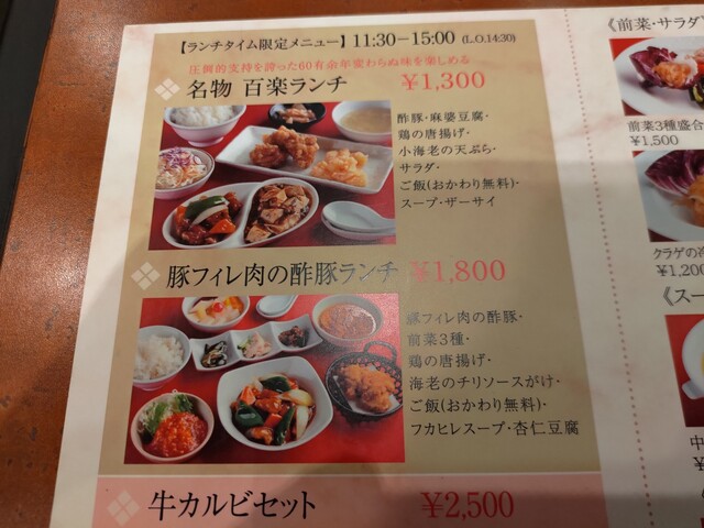 当時から、平日限定の百楽ランチがコスパが良く、ボリュームもあり、大変美味しいでした。