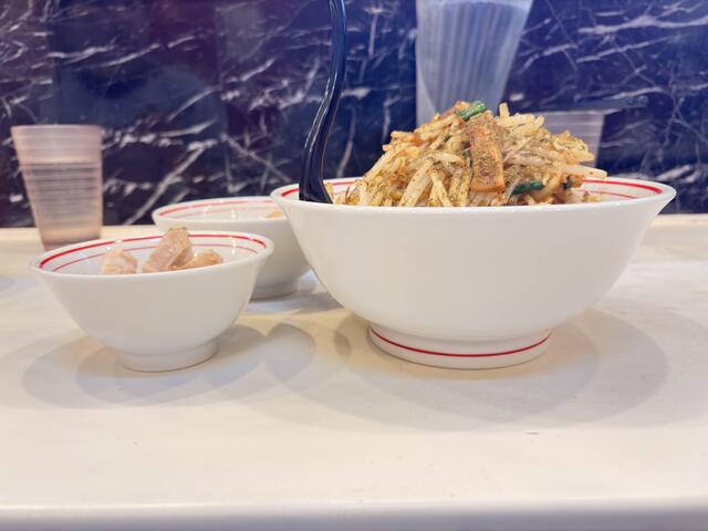 モヤシの炒められ香ばしさと、山椒の風味が合わさり、そこに豚小間のコクが加わって、えもいわれぬ味わい。