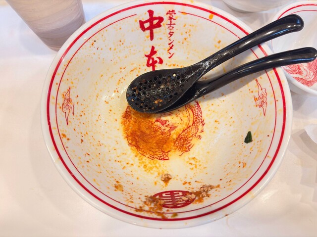 中本台湾ラーメンにもどり、スープまで完飲完食しました!!