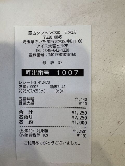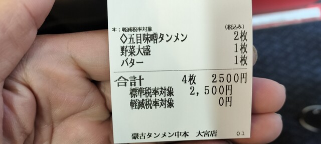 今日は「五目味噌タンメン1120円+野菜大盛110円」を購入しました。