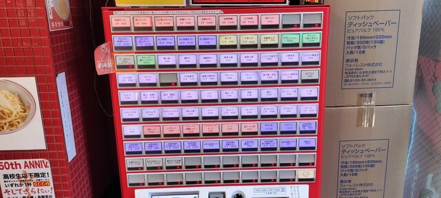 この券売機も高いんだろうなぁ。新紙幣に伴う出費もかなりの負担なんだろうなぁ、なんてことを考えながら、初めての券売機で食券を購入します。