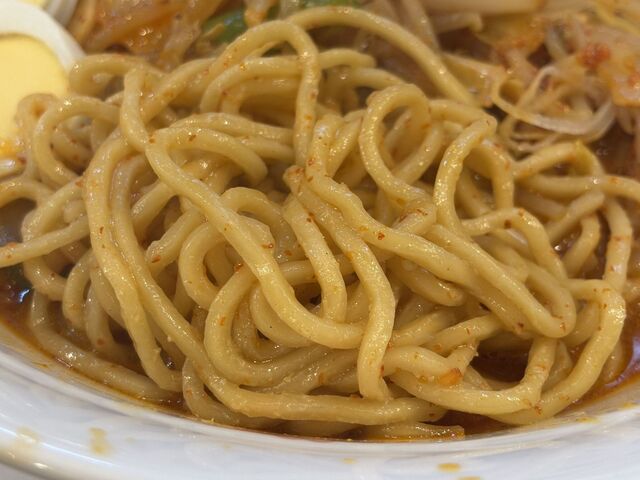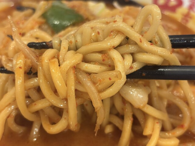 辛めの味噌スープに、中本風チンジャオロースの味わいが徐々にスープに混ざり味わいが変わります。