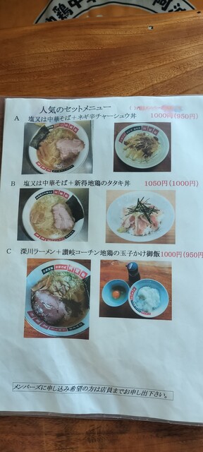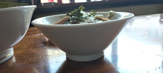 頂いたのは、Bセット(塩ラーメン+新得地鶏のタタキ丼1000円)に倉島バター追加トッピング(100円)でいただきました。