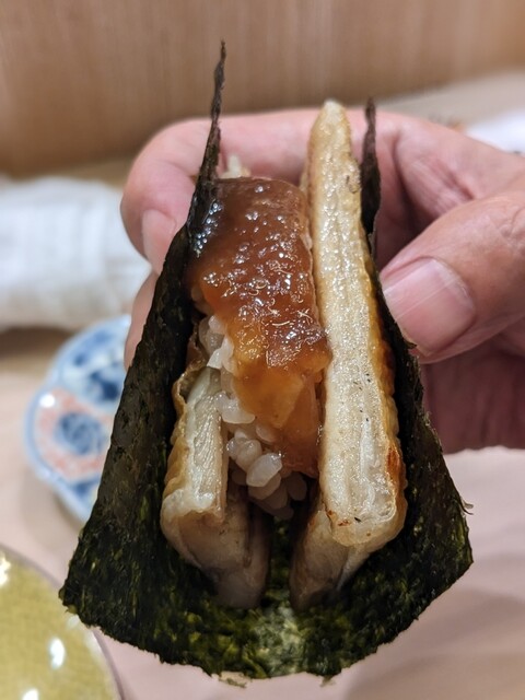 完全オリジナル!関西風の外パリ中フワの熱々うなぎでシャリを挟み、甘めのタレをかけてます。このパリパリ感最高です。