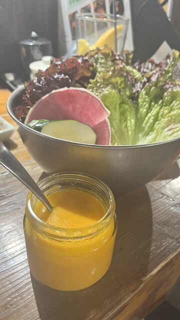 新鮮でシャキシャキの野菜に人参ドレッシングがよく合います!