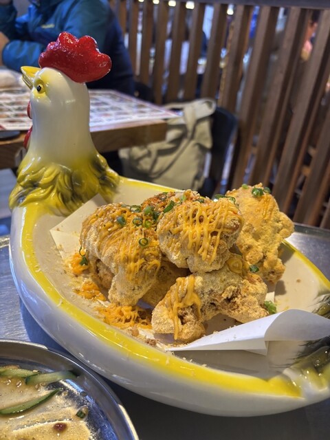 次に感動した味絶対食べてほしいのがチェダーチーズチキン。カリッカリのチキンフライにきな粉のような粉末状のチーズとその上からチェダーチーズソース!カロリーの爆弾だが今は忘れよう。新感覚の唐揚げに感動。みんなも試してみて!