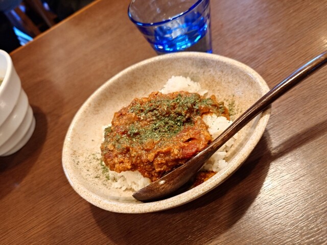 特製中華そば1150円、担々麺900円、昆布水つけそば980円、限定の味噌そば900円と薬膳カレーを注文。(写真はつけそばと薬膳カレー)