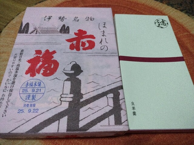 今回購入したのは赤福12個入り2箱、生羊羹8本入り、4本入をそれぞれ1箱ずつ。