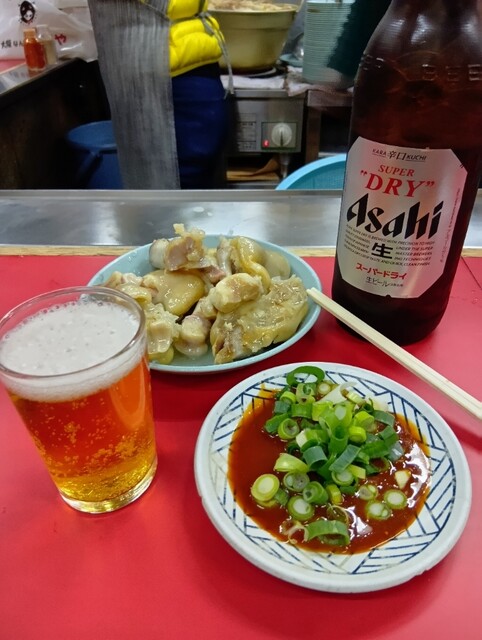 座ったら、ビール?はい、豚足?はい、生センは?食べます!のやり取りで入店1分後には全部揃ってた。