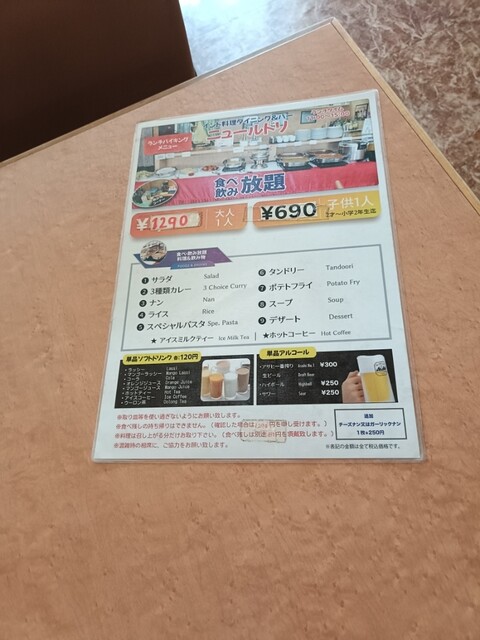 メニュー出されて、表:食べ放題、裏:アラカルト。
