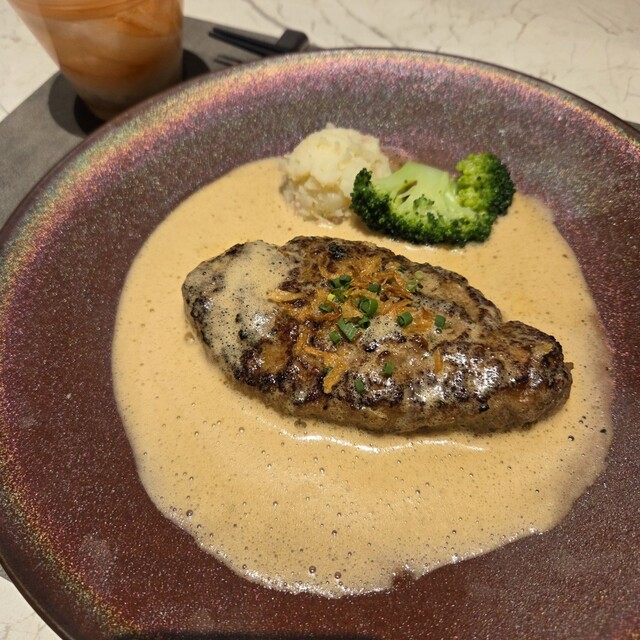 ガーリックの効いた香り高いバターのソースは本当に本当に美味しくて…チーズハンバーグが人気ですがわたしはむしろチーズがない方がこのソースの味わいをダイレクトに感じられるのでチーズなしが好みです。