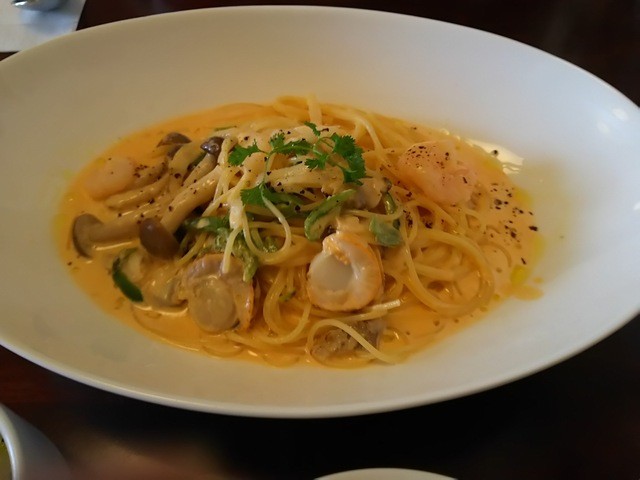 妻はシーフードクリームスパゲティを頼みました