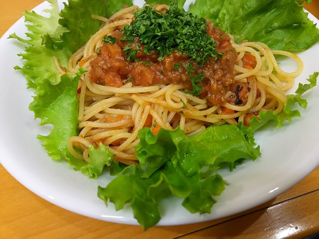 個人的にはスパゲティが、もうすこし太い方がいいなと思いました