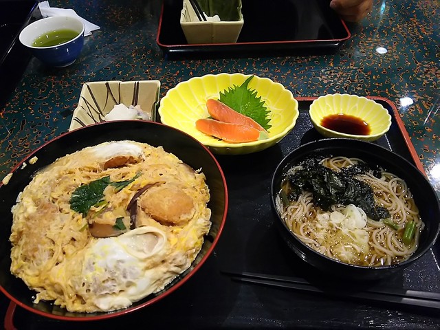 わたしは、親子丼セット950円(おしんこ、サラダつき)、妻はかき揚げ丼セット950円(おしんこ、サラダ、茶碗蒸しつき)にしました