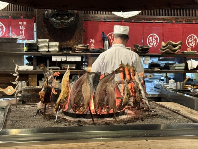 この日は、風がとても強くて、少しイラついていたのですが、連れと歓談しつつ、店内に入ると、いつもの囲炉裏!