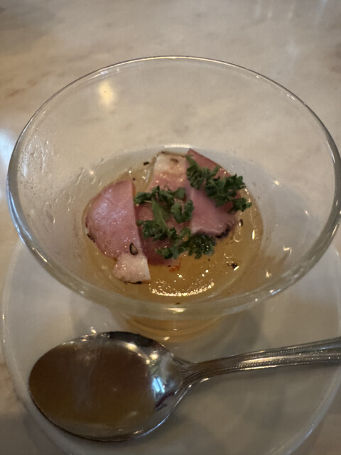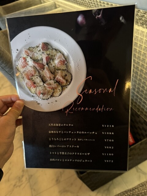 季節のお料理で、水なすのカルパッチョ頼んだんだけど、何故か写真と違いしんなりしてないし、