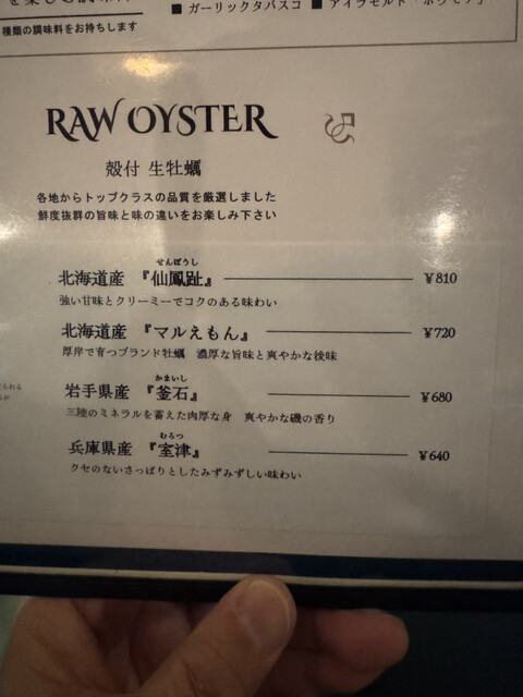 牡蠣も、五島の岩牡蠣がレパートリーに加わり、