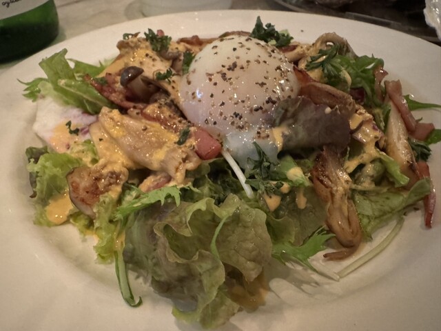 最高に美味い 半熟卵ときのこのサラダ! 量は多いけど、旨し! 量は多いので、2人でもSサイズでね!