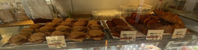 他に、朝焼きたてのアップルパイやフィナンシェなど購買意欲をそそる展示も楽しいです、シフォンケーキが有名らしいですがまだ買ったことは無く…一個1,800円内です。