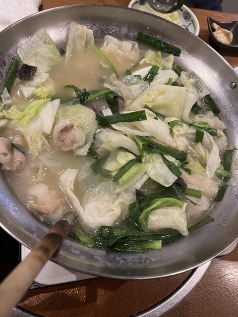 醤油系、味噌系はどこでも食べれますが、ここのもつ鍋はニンニク使ってなく水炊きスープで煮込みポン酢で食べます。