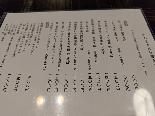 「そば」は期待通りの「十割そば」、香りと独特の触感を味わえる「新そば」を楽しめました。