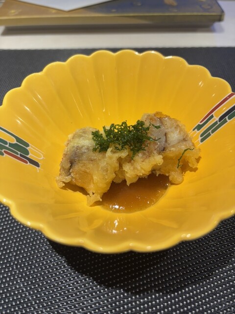 鮑は小ぶりながらも揚げ具合が素晴らしい。