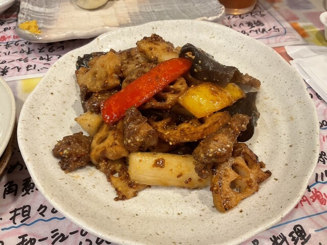 レバーれんこんかぼちゃ豆板醤炒め
