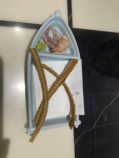 骨せんべい、見た目!! インパクト大な立派な骨! 噛み締めると旨味がジュワッと広がります