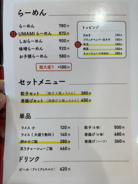 ここでは塩も気に入っているので(個人的に塩部門鹿児島No.1)迷いましたが、今回は特製うまみラーメンをオーダー。