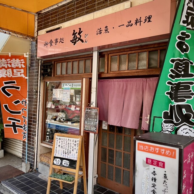 駅北5分。幹線道路に面した「御食事処 敏」さん。