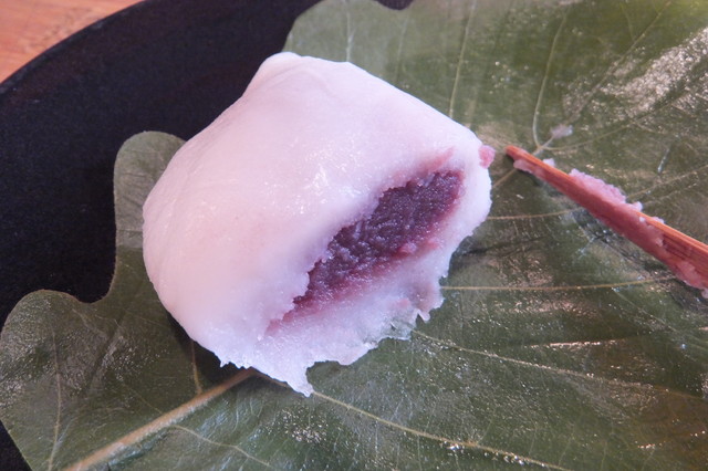 「柏もち」は紅白あり紅は中身がみそ餡でした。もちの表面に柏の葉脈のあとがついていてもちの表面の絶妙な柔らかさがよくわかりました。