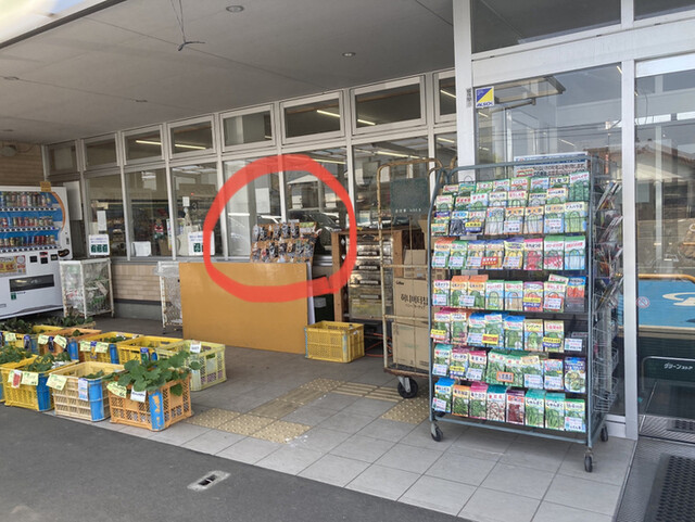入口横の赤丸の所にソフトクリームのメニューがあります