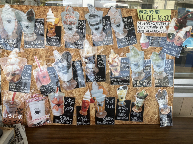反射で見辛いですが、、、ソフトクリーム類のメニューです