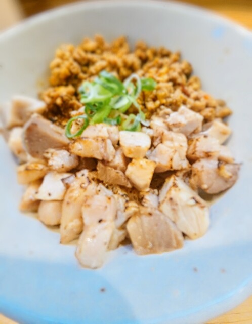 冷やし中華目当ての来店でしたが同じ限定メニューである淡麗鶏白湯つけ麺と迷いに迷い、結局、鶏白湯つけ麺と肉飯を選択しました。