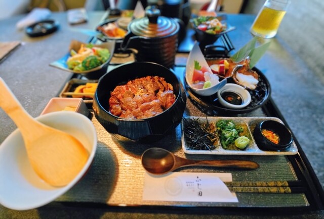 結局、せっかくだからとふじ田御膳を2人ともお願いし、肉まぶしは黒毛和牛A5ランクを選択しました。