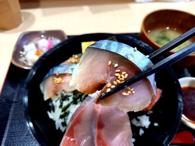 〆鯖、昆布締め、炙りの3種類が1つの丼で楽