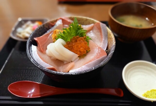 海鮮丼にしても良し、イカ刺しをのせて醤油